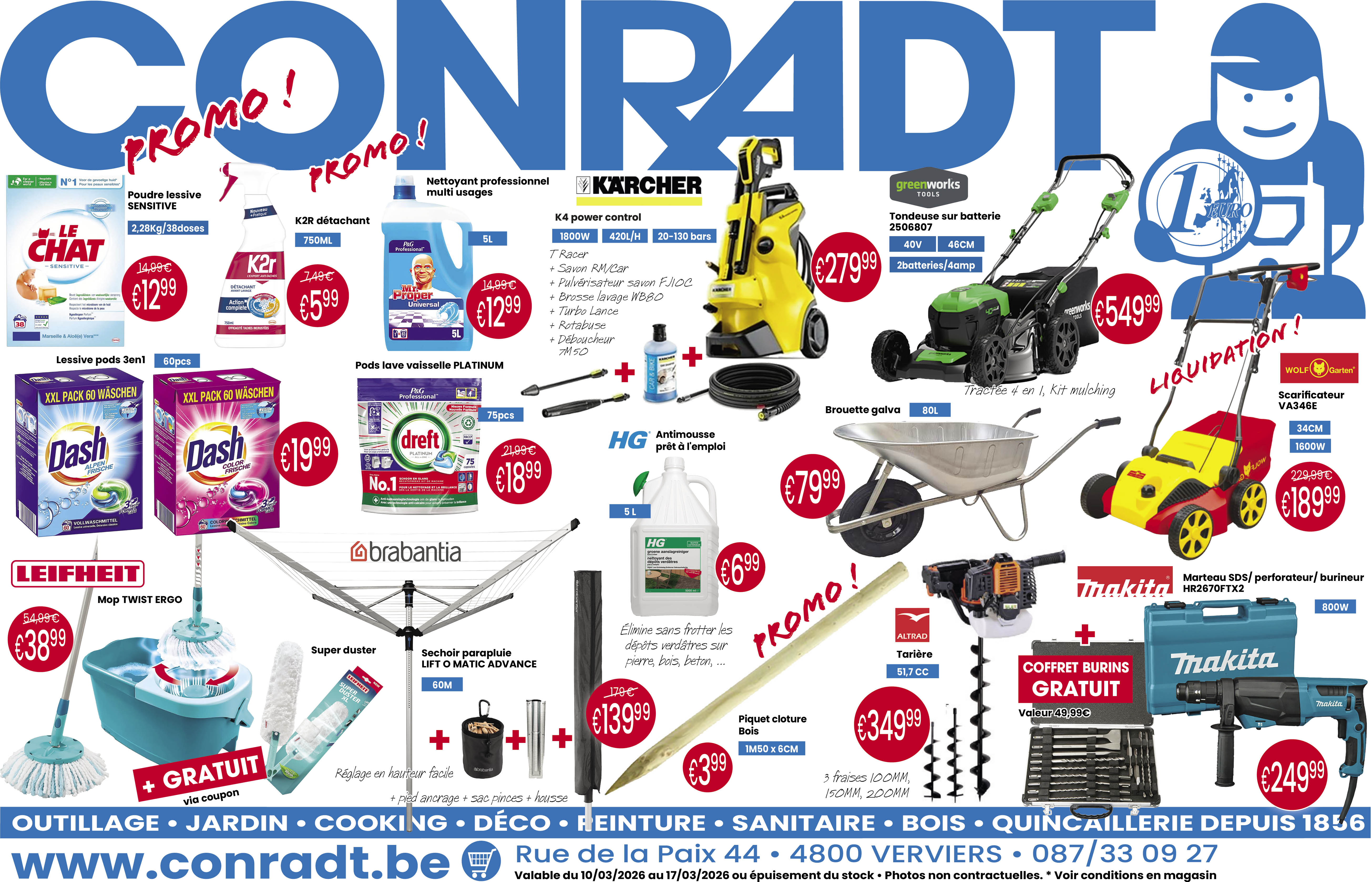 SA Quincaillerie Conradt - BE0408.189.262 - 44 Rue de la Paix 4800 Verviers Tél: 087/33.09.27 E-mail : internet@conradt.be Ouvert du lundi au samedi de 9 à 18 h. Site web : http://www.conradt.be